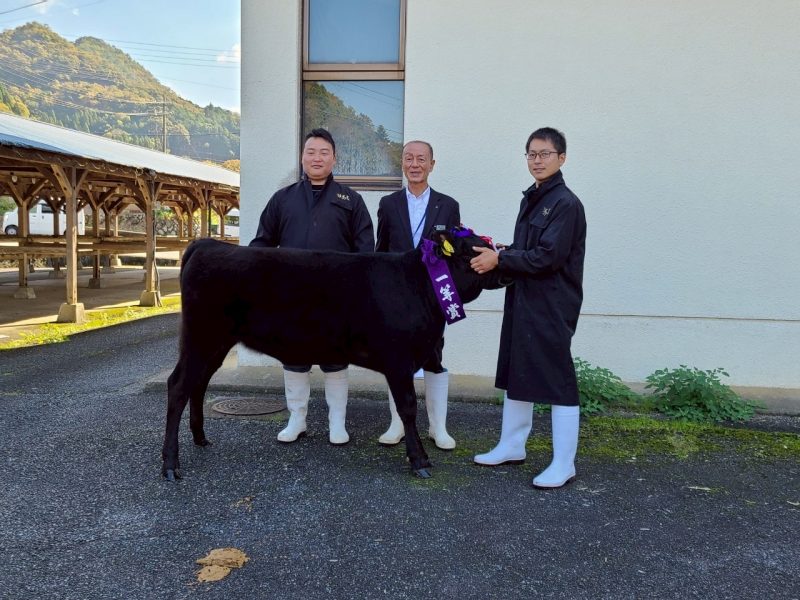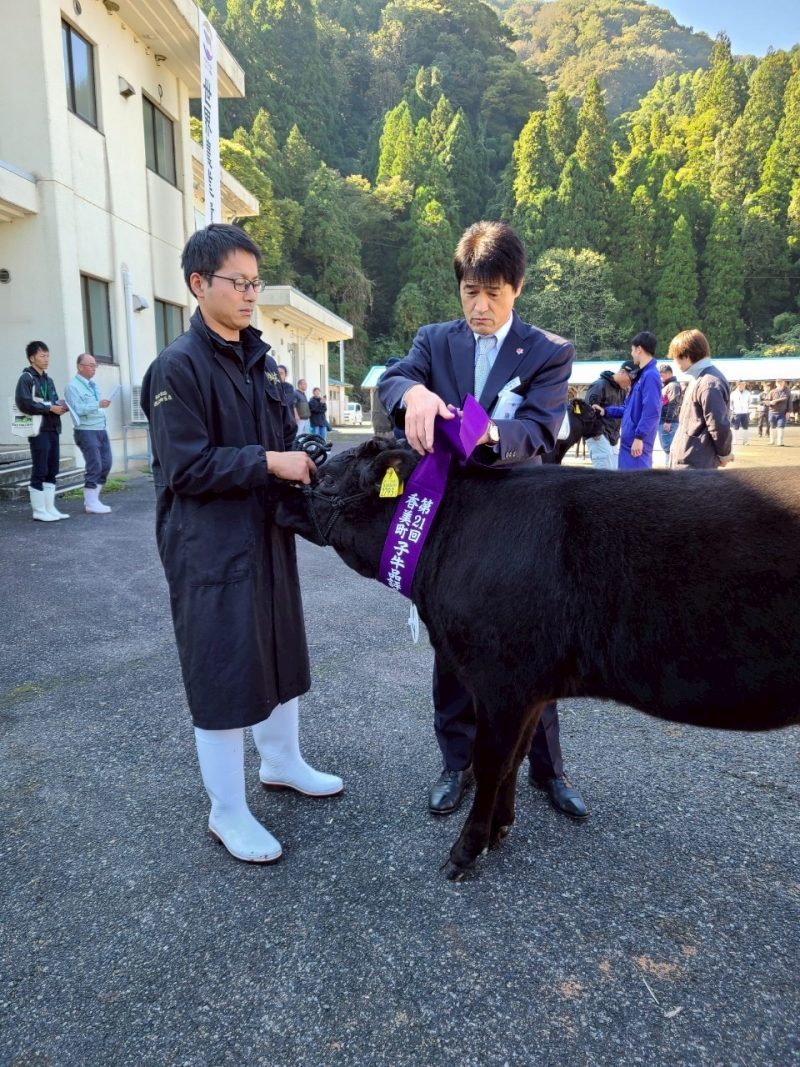 前期の部が台風の影響で中止になっていたので今年の子牛品評会は今日が最初で最後。1等賞1席をいただけてよかったです。